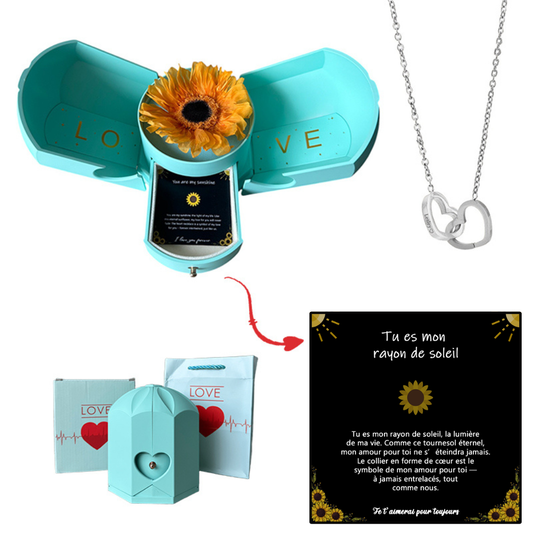 Coffret Tournesol Éternel & Collier Cœur Personnalisé (50%OFF)