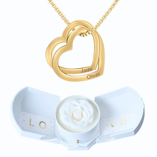 Caja con Rosa Eterna & Collar Corazones entrelazados 💕